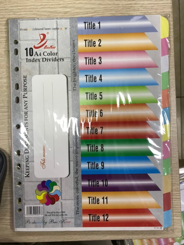 *Thông tin sản phẩm: Bộ Chia file nhựa 10 màu Thăng Long *Mô tả: -Thương hiệu: Thăng Long. -Thông số
